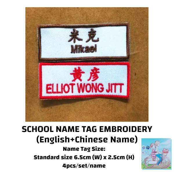School Name Tag Embroidery 1pcs English Chinese Name Shopee Malaysia
